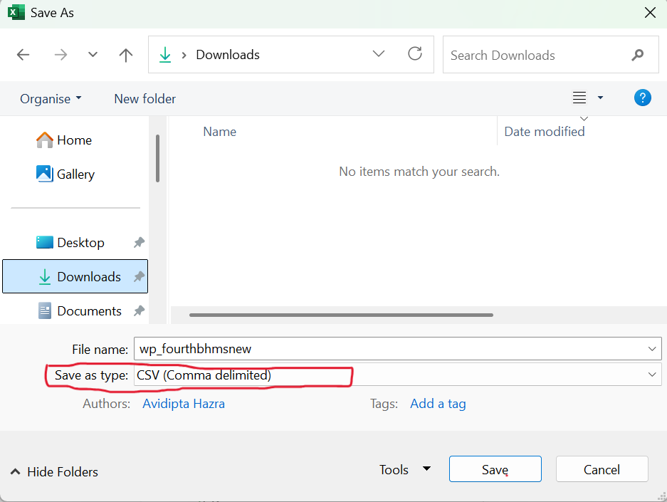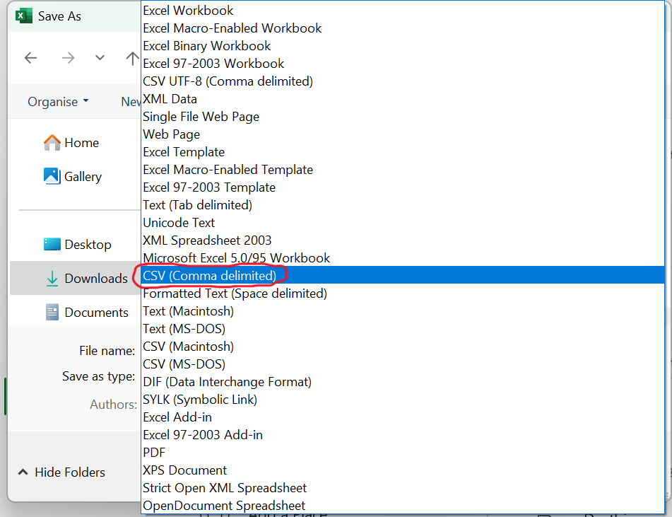 Step: 6 Now choose “CSV (Comma delimited)” & save file for upload.