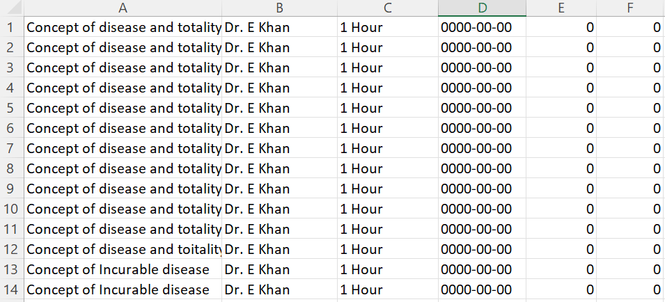 Step: 1 First make this exel file like this same. [Default, Column D = Date (format should be date format, value should 0000-00-00), Column E = Signatute & Date (value must be 0), Column F = Remarks (value must be 0)