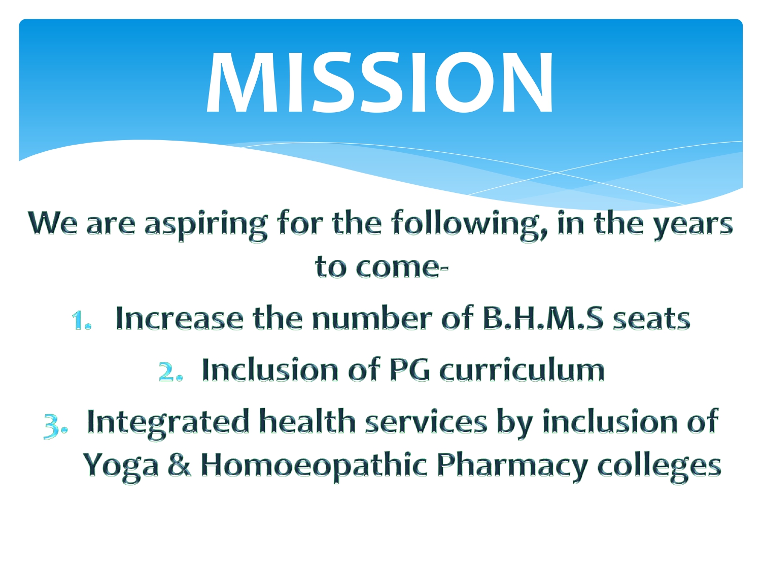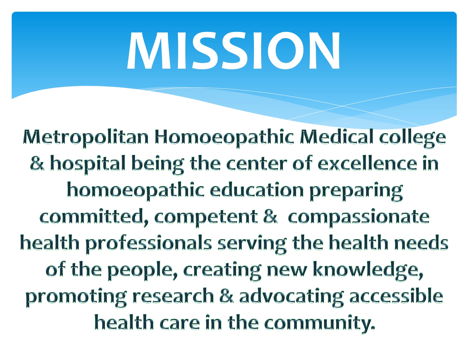 Home Admission Academic BHMS Admission Curriculum & Syllabus Genera Rules & Regulations Student Data (Year Wise) Awards & Achivements Anti Ragging Cell Library College Heritage & Glory Vision & Mission Governing Body Administration Desk Principal Details Affiliations Teaching Staffs Administratitive Staffs Supportive Staffs Yoga & Naturopathy Unit Departments Anatomy Physiology and Biochemistry Homoeopathic Pharmacy Pathology Forensic Medicine and Toxicology Organon of Medicine and Philosophy Homoeopathic Materia Medica Obstetrics and Gynaecology Surgery Practice of Medicine Community Medicine Case Taking and Repertory Hospital Services & Facilities Hospital Staffs Research Activity Out Patient Department (OPD) In Patient Department (IPD) OPD Schedule & Appiontment OPD & IPD Monthly Report Resarch Research Institutional Ethical Committee Scientific Advisory Committee Student Research Unit Past Publications Student Portal Student Verification Certificate Verification Online Fees Payment Student Login Notice Gallery ☰ Vision and Mission